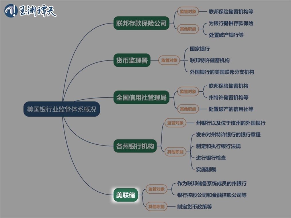 讓我們重新看回這張圖,可以看到,按照美國(guó)銀行業(yè)監(jiān)管體系的分工,美聯(lián)儲(chǔ)負(fù)責(zé)監(jiān)管所有成員銀行的正常運(yùn)行。