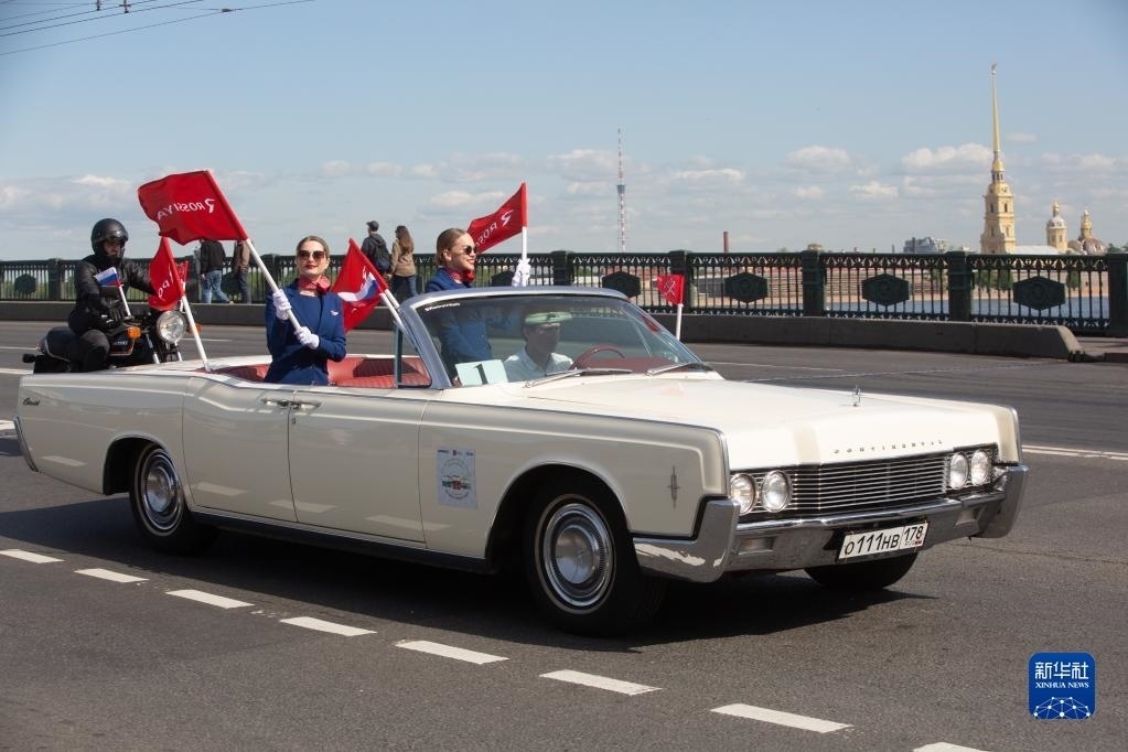 5月20日,老爺車(chē)在俄羅斯圣彼得堡街頭巡游。