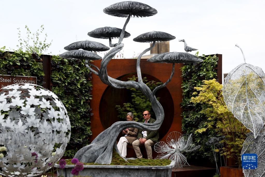 5月22日,人們在英國倫敦參加切爾西花展媒體日。