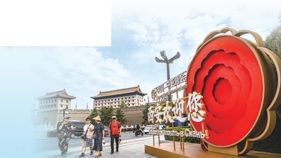 中國—中亞峰會主題裝置亮相西安街頭。 袁景智攝(影像中國)