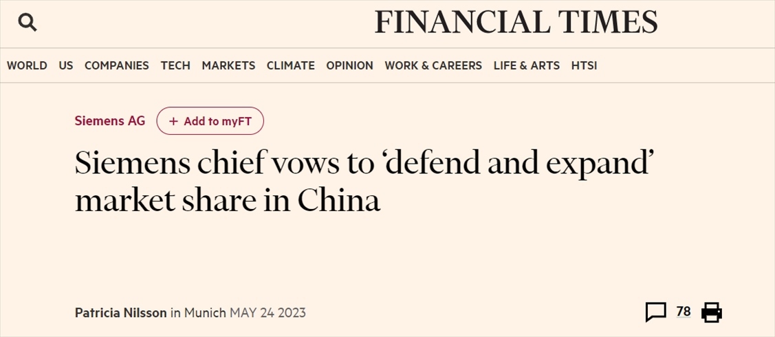 西門子首席執(zhí)行官博樂仁(Roland Busch)近期在接受英國《金融時(shí)報(bào)》采訪時(shí)表示,中國客戶是推動(dòng)這家德國工程巨頭持續(xù)創(chuàng)新的動(dòng)力,他要“捍衛(wèi)”和“擴(kuò)大”公司在中國的市場份額。