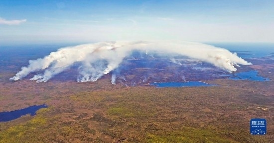 這是5月31日在加拿大新斯科舍省謝爾本縣上空拍攝的野火。新華社發(fā)(新斯科舍省政府供圖)