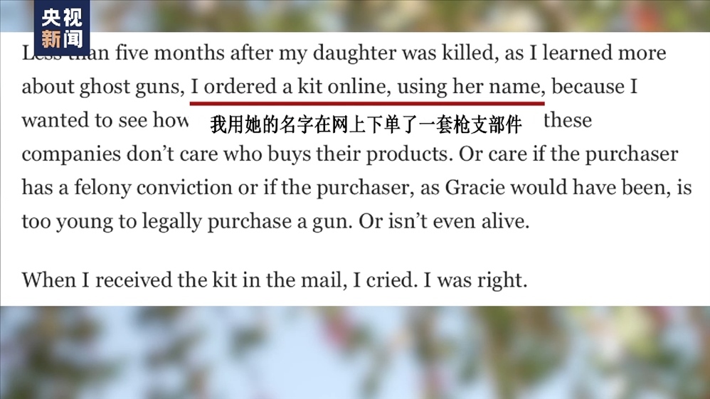 槍擊案發(fā)生不到五個(gè)月后,遇害者之一格雷斯·穆爾伯格的父親用已逝女兒的名字成功訂購到一套“幽靈槍”的槍支部件,他在《華盛頓郵報(bào)》分享了這個(gè)經(jīng)歷,以此揭露“幽靈槍”行業(yè)的黑暗。