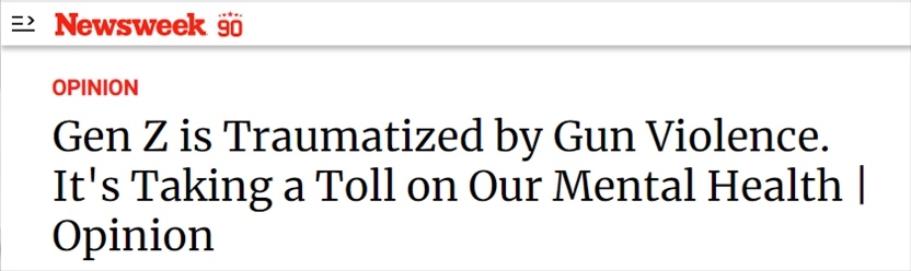 文章作者亞莉克莎·布朗寧(Alexa Browning)寫到,作為年輕人,她對(duì)槍支暴力造成的創(chuàng)傷有切身體會(huì),其帶來(lái)的恐懼已滲透到她日常生活的每個(gè)角落,讓她精疲力盡。她無(wú)法和家人一起去看電影,因?yàn)樗浅?dān)心自己分辨不了煙花的響聲和槍聲。