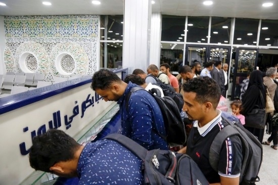 5月14日,從蘇丹撤離的也門公民抵達(dá)薩那國(guó)際機(jī)場(chǎng)。新華社發(fā)(穆罕默德·穆罕默德攝)