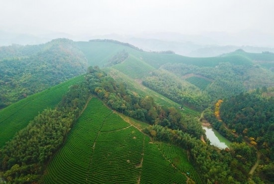 俯瞰浙江省安吉縣魯家村茶園(2018年11月16日無人機(jī)拍攝)。新華社記者孟晨光攝