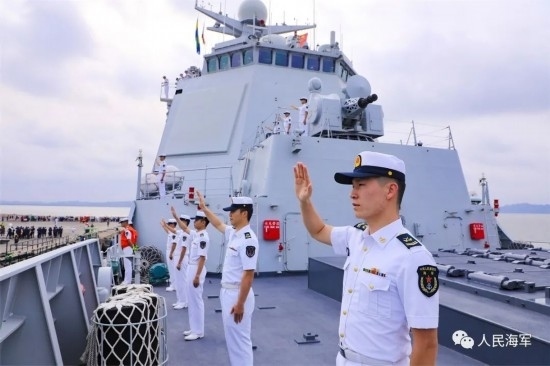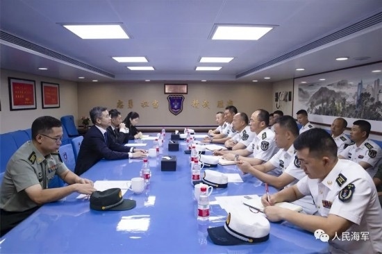 隨后,李津津大使及彭吉中將等一行人登上南寧艦進(jìn)行參觀,彭吉中將在南寧艦艦長(zhǎng)和政委的陪同下,檢閱了南寧艦儀仗隊(duì)。