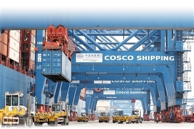 中遠海運港口阿聯(lián)酋阿布扎比碼頭采用岸橋預留自動化和堆場自動化作業(yè)模式,可作業(yè)超2萬標準箱大型船舶,年設計能力250萬標準箱。本報中東中心分社 納達爾·達烏德攝