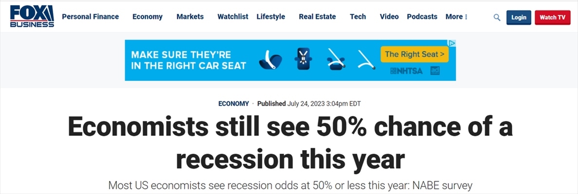據(jù)美國(guó)《??怂剐侣劸W(wǎng)》報(bào)道,美國(guó)商業(yè)經(jīng)濟(jì)協(xié)會(huì)發(fā)布的一項(xiàng)新調(diào)查,絕大多數(shù)商業(yè)經(jīng)濟(jì)學(xué)家仍然認(rèn)為美國(guó)經(jīng)濟(jì)今年陷入衰退的可能性為50%。