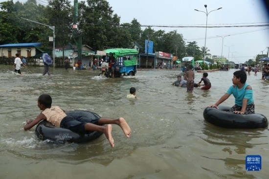 這是8月12日拍攝的緬甸勃固鎮(zhèn)洪災(zāi)區(qū)。新華社發(fā)(苗覺梭攝)