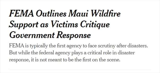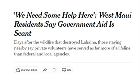 《紐約時(shí)報(bào)》8月14日?qǐng)?bào)道,聯(lián)邦緊急事務(wù)管理局要求人們?cè)诰W(wǎng)站上注冊(cè)后才能獲得臨時(shí)住房等援助,但是毛伊島西部受災(zāi)最嚴(yán)重地區(qū)目前依然處于斷電斷網(wǎng)中,那里的災(zāi)民根本無法登錄網(wǎng)站。