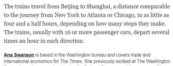 但是,《紐約時報(bào)》隨后刪除了這篇報(bào)道中有關(guān)中美列車速度對比的內(nèi)容。