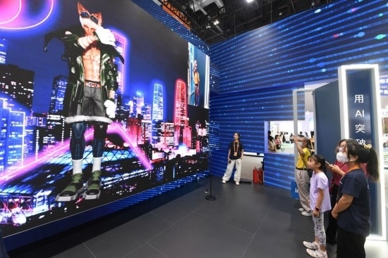 9月3日,一名參觀者在首鋼園中國移動展臺體驗(yàn)基于AR/VR特效的敦煌導(dǎo)覽,沉浸式感受敦煌壁畫的魅力。新華社記者 李鑫 攝