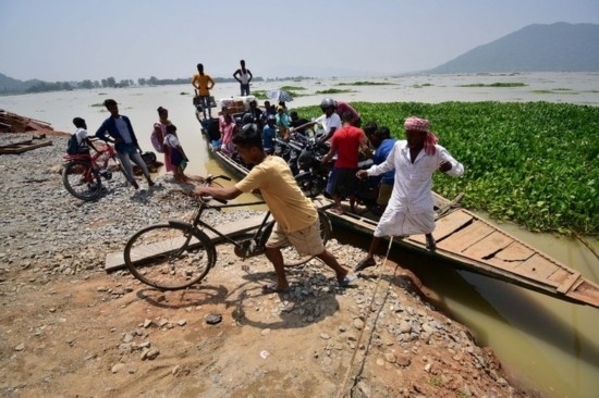 8月30日,人們在印度東北部阿薩姆邦一處洪災(zāi)區(qū)域乘船出行。新華社發(fā)