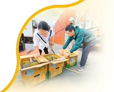 “針對(duì)水果等生鮮農(nóng)產(chǎn)品特點(diǎn),我們采取7×24小時(shí)預(yù)約通關(guān),設(shè)置農(nóng)食產(chǎn)品專用窗口,優(yōu)先辦理鮮活易腐農(nóng)產(chǎn)品接單、放行業(yè)務(wù),并采取即到即檢即放模式,確保進(jìn)口水果通關(guān)零延遲?!臂屡D海關(guān)關(guān)長韓斌說。