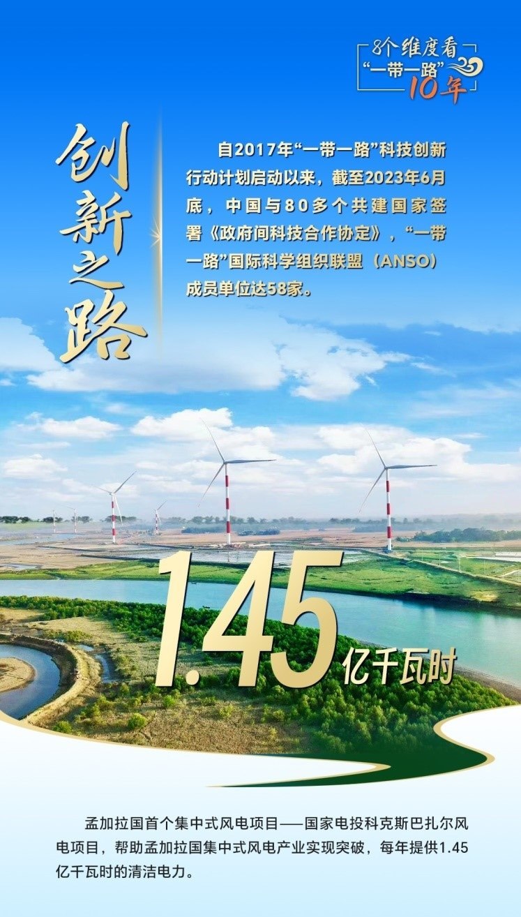 10年來,創(chuàng)新始終是一個關鍵詞,中國與共建國家加強科技創(chuàng)新合作,加速集聚創(chuàng)新資源,為共建“一帶一路”注入強勁動力。截至2023年6月底,中國與80多個共建國家簽署《政府間科技合作協(xié)定》,“一帶一路”國際科學組織聯(lián)盟(ANSO)成員單位達58家;2013年以來,中國支持逾萬名共建國家青年科學家來華開展短期科研工作和交流,累計培訓共建國家技術和管理人員1.6萬余人次;累計幫助50多個非洲國家建成20多個農(nóng)業(yè)技術示范中心,在農(nóng)業(yè)、新能源、衛(wèi)生健康等領域啟動建設50余家“一帶一路”聯(lián)合實驗室。