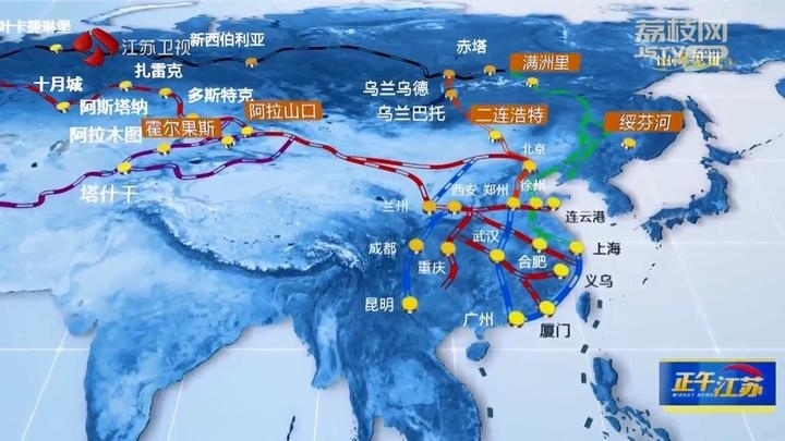 1992年,江蘇連云港開通最早發(fā)往中亞的班列;2013年,蘇州、鄭州、重慶、成都首批開通中亞班列;2016年,統(tǒng)一品牌:中歐班列。截至2023年9月底,中歐班列累計(jì)開行超7.8萬(wàn)列,聯(lián)通中國(guó)境內(nèi)112個(gè)城市,通達(dá)歐洲25個(gè)國(guó)家的217個(gè)城市。