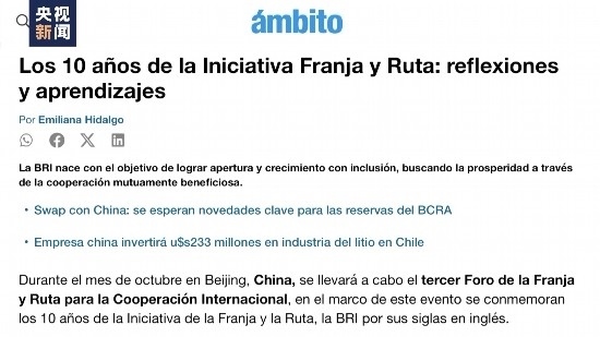 阿根廷著名經(jīng)濟(jì)類日?qǐng)?bào)《金融界報(bào)》在官網(wǎng)發(fā)表評(píng)論文章,回顧了共建“一帶一路”倡議的發(fā)展歷程和帶給世界的思考和借鑒。文章稱,經(jīng)過十年發(fā)展,該倡議已覆蓋全球150多個(gè)國家,為世界互利共贏合作樹立了榜樣。