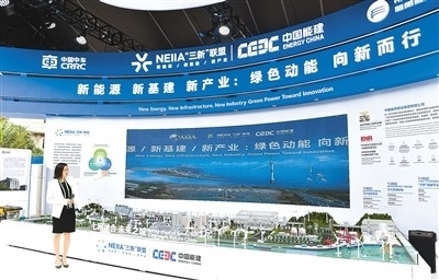 博鰲亞洲論壇2023年年會(huì)上,中國能建參展人員介紹“新能源 新基建 新產(chǎn)業(yè):綠色動(dòng)能 向新而行”展臺(tái)。新華社記者 楊冠宇攝