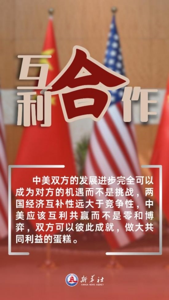中美雙方的發(fā)展進步完全可以成為對方的機遇而不是挑戰(zhàn),兩國經(jīng)濟互補性遠大于競爭性,中美應(yīng)該互利共贏而不是零和博弈,雙方可以彼此成就,做大共同利益的蛋糕。