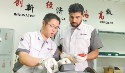 中國師傅們的悉心教導(dǎo),讓埃方員工對(duì)中國感情愈加深厚。烏薩馬表示,自己能從零開始當(dāng)上部門副經(jīng)理,特別要感謝他的中國師傅沈林洪?!皫煾翟诠ぷ魃鲜职咽謧魇诩寄?,讓我的專業(yè)技術(shù)水平逐漸提升。他在生活上也對(duì)我百般照顧,助我快速成長?!睘跛_馬說,雖然師傅現(xiàn)在已經(jīng)回國了,但他們還一直保持著聯(lián)系,“每逢春節(jié)、開齋節(jié)等兩國的重要節(jié)日,我們都會(huì)互相問候。”