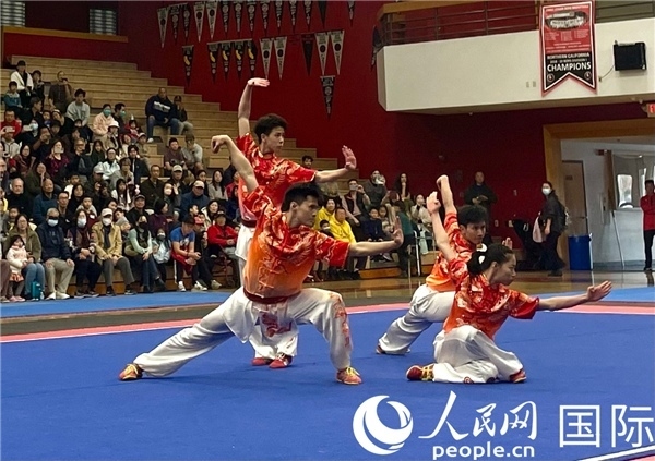 中國(guó)武術(shù)隊(duì)員表演現(xiàn)場(chǎng)。人民網(wǎng)記者 鄧圩攝