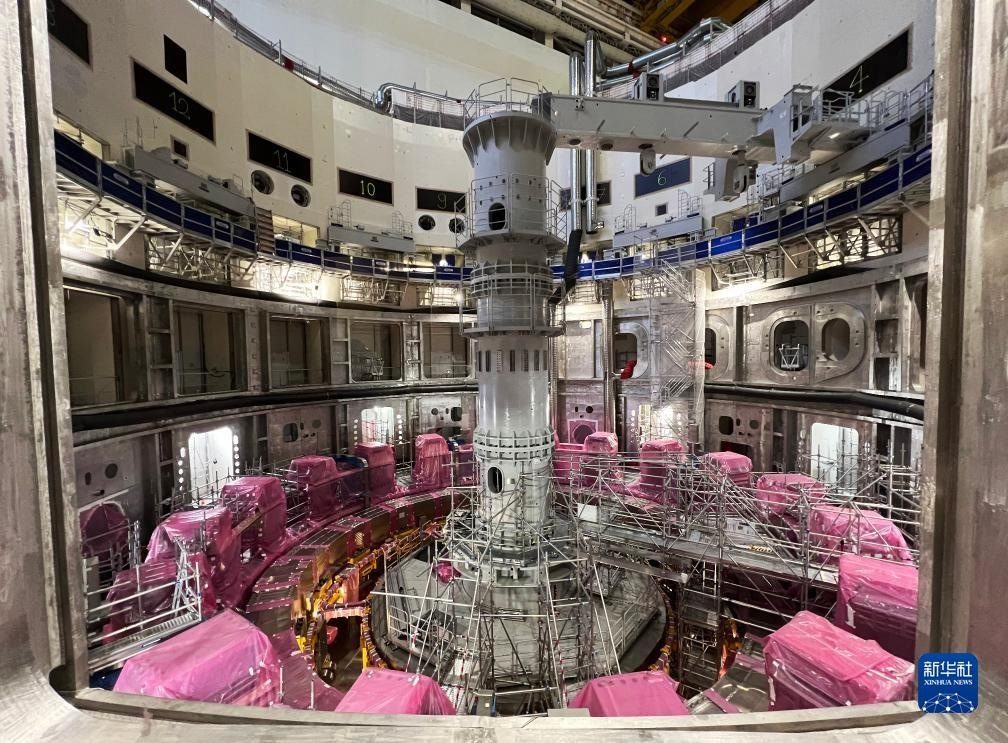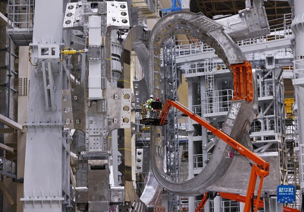 ?這是11月23日在位于法國(guó)圣保羅-萊迪朗斯的國(guó)際熱核聚變實(shí)驗(yàn)反應(yīng)堆(ITER)建設(shè)現(xiàn)場(chǎng)拍攝的安裝中的托卡馬克裝置。新華社記者 高靜 攝