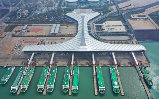 這是??谛潞L裝碼頭客運(yùn)綜合樞紐站項目(11月29日攝,無人機(jī)照片)。新華社記者郭程攝