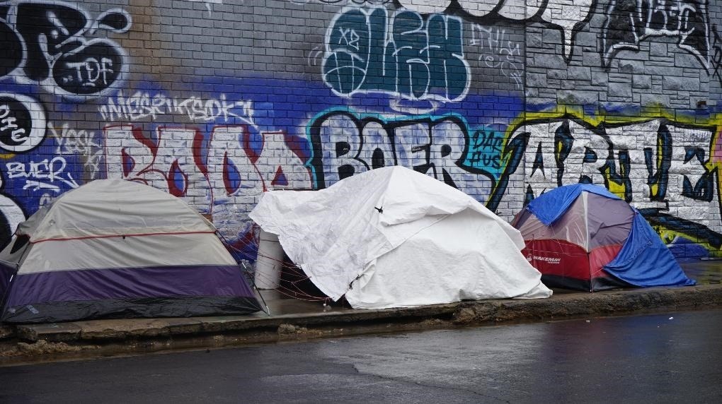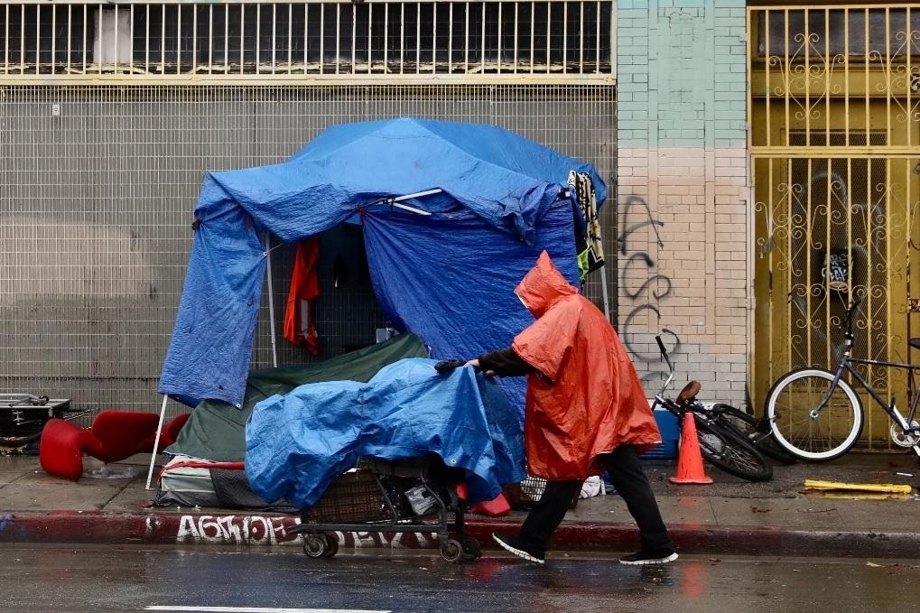 這是2023年1月10日在美國洛杉磯市中心拍攝的無家可歸者的帳篷。新華社發(fā)(曾慧攝)