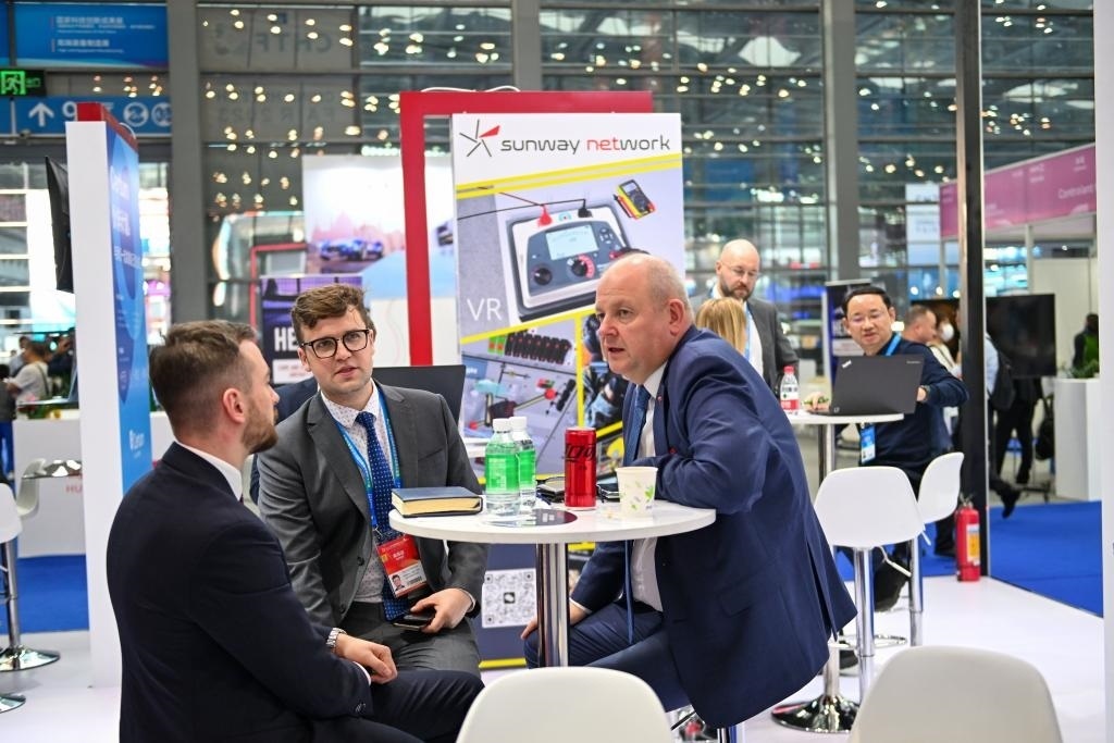 11月15日,在第二十五屆高交會上,客商在波蘭展臺交流。新華社記者 毛思倩 攝