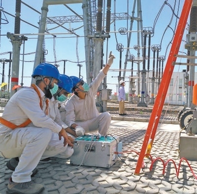 在巴基斯坦默蒂亞里—拉合爾直流輸電項目現(xiàn)場,中巴工程師對設(shè)備開展日常檢修。本報巴基斯坦分社 薩義德·邁赫迪攝