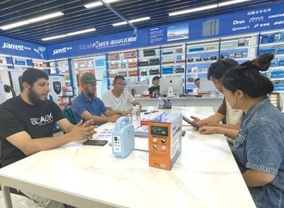 最近,埃馬紐埃爾又開始關(guān)注新能源產(chǎn)品?!翱溌∫恍┑胤酱嬖陔娏Χ倘?、供電不穩(wěn)的問題,很多當(dāng)?shù)厝讼M夷茉谥袊?guó)找到合適的產(chǎn)品?!睘榇?,他把目標(biāo)瞄準(zhǔn)了義烏國(guó)際商貿(mào)城的新能源產(chǎn)品市場(chǎng),尋找到一些適合喀麥隆的光伏設(shè)備?!爸袊?guó)的新能源產(chǎn)品性能可靠、性價(jià)比高,產(chǎn)品品類覆蓋領(lǐng)域廣泛?!卑qR紐埃爾表示,大到醫(yī)療機(jī)構(gòu),小到禽畜養(yǎng)殖場(chǎng),中國(guó)光伏設(shè)備供應(yīng)的電力有助于滿足當(dāng)?shù)孛癖娚a(chǎn)生活的用電需求。