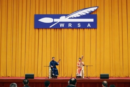 聯(lián)誼會(huì)現(xiàn)場(chǎng),中央民族歌舞團(tuán),浙江小百花越劇院、蘇州市評(píng)彈團(tuán)的藝術(shù)家們?yōu)樵趫?chǎng)嘉賓奉上了民族器樂(lè)合奏《五色風(fēng)情》、越劇《十八相送》、評(píng)彈《姑蘇好風(fēng)光》、歌舞劇《同心共圓中國(guó)夢(mèng)》等文藝節(jié)目,為中外嘉賓帶來(lái)一場(chǎng)別具特色的視聽盛宴。