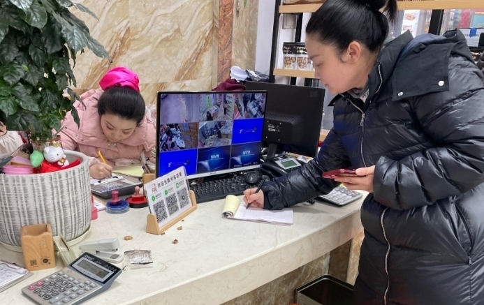 這是湖南長(zhǎng)沙高橋大市場(chǎng)堅(jiān)果經(jīng)銷商李海麗(右一)在聯(lián)系物流。新華社記者 余春生 攝