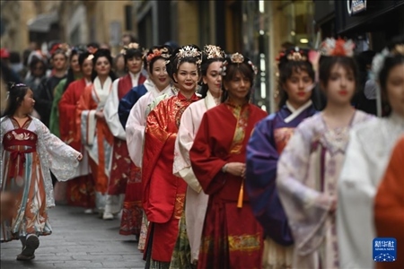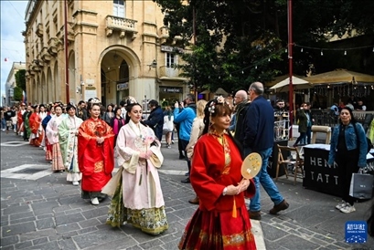 馬耳他民眾和當(dāng)?shù)赜慰?7日在地中海古城瓦萊塔的街道上欣賞到一場(chǎng)美妙的“漢服秀”。20多名中外女性漢服愛好者身著漢服,或手持團(tuán)扇,或提著宮燈,在地中海的微風(fēng)中款款而行。