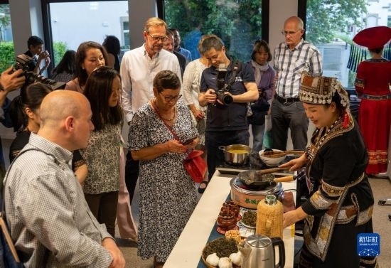 手握毛筆、蘸滿墨汁,一個(gè)個(gè)“?!弊殖尸F(xiàn)在紅紙上??窢柛駹栂镏械闹袊?guó)傳統(tǒng)文化體驗(yàn)展位前擠滿了當(dāng)?shù)匦∨笥??!爸袊?guó)文化令人陶醉!”帶著女兒前來(lái)游玩的莫斯科市市民伊萬(wàn)諾夫娜一邊展示女兒的作品,一邊用中文送上祝福。