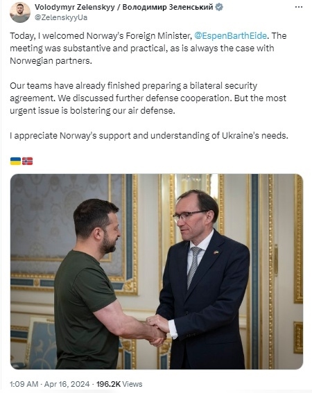 中新網(wǎng)4月16日電 據(jù)法新社報(bào)道,挪威方面當(dāng)?shù)貢r(shí)間15日表示,該國(guó)已與烏克蘭達(dá)成一項(xiàng)安全協(xié)議。挪威外交部長(zhǎng)稱,該協(xié)議將在澤連斯基下次與挪威首相斯特勒會(huì)面期間簽署并公布。同日早些時(shí)候,烏克蘭總統(tǒng)澤連斯基表示,烏克蘭已與9國(guó)簽署雙邊安全協(xié)議。