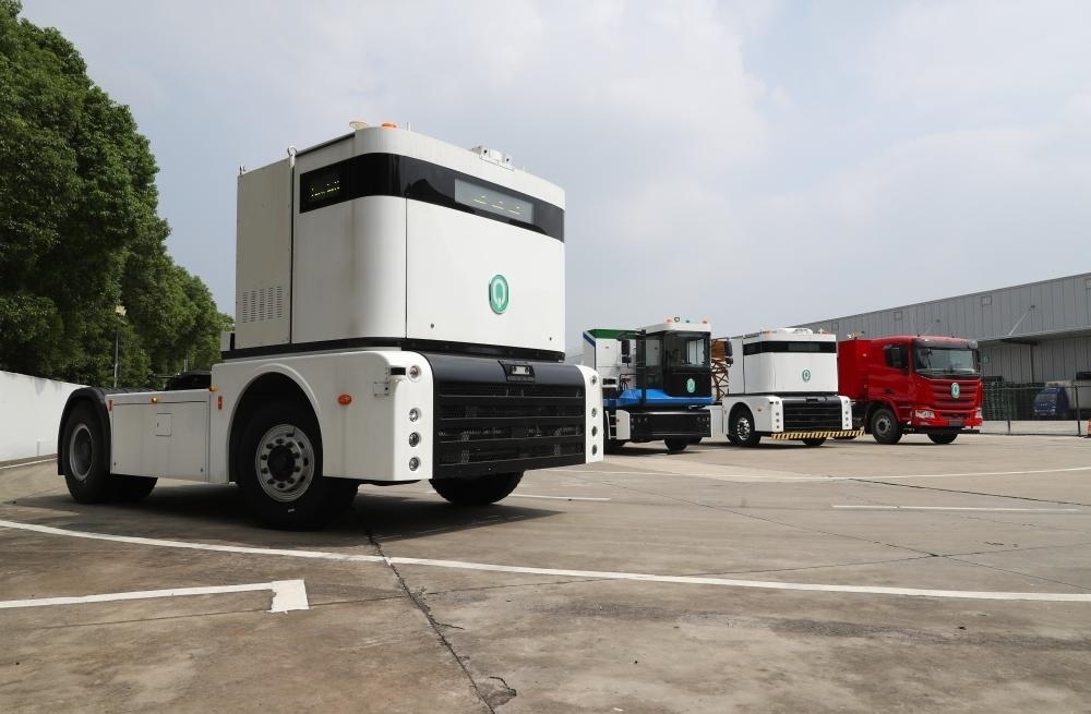?一輛西井科技的無(wú)人駕駛重卡Q-Truck(前)在位于上海的無(wú)人駕駛商用車聯(lián)合實(shí)驗(yàn)室場(chǎng)地上進(jìn)行動(dòng)態(tài)測(cè)試(2023年9月26日攝)。 新華社記者 方喆 攝