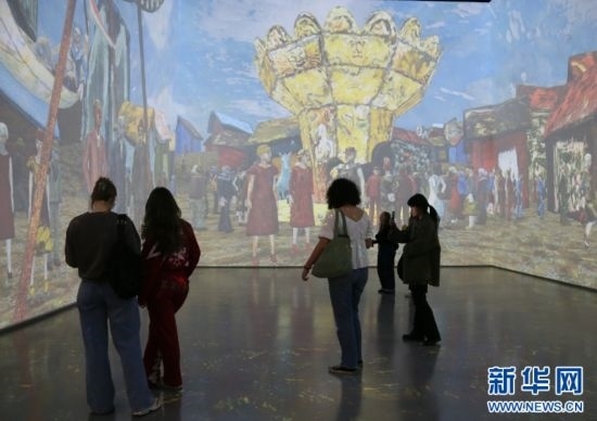該博物館還致力于展示新技術(shù),在“糧倉(cāng)實(shí)驗(yàn)室”展廳,博物館將平面的油畫(huà)作品投影至地面和四面墻上,通過(guò)聲光電等形式,轉(zhuǎn)化為立體的多媒體作品,吸引了眾多參觀者觀摩。