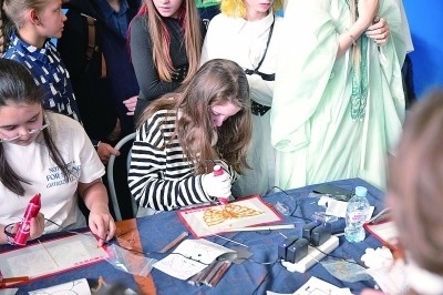 在俄羅斯首都莫斯科,一名學(xué)生在4月舉行的中文日活動上制作糖畫。 新華社發(fā)