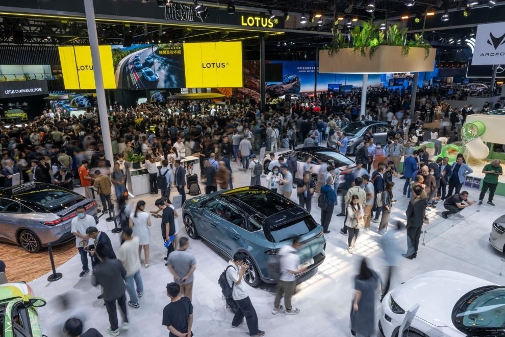 4月25日,人們在2024(第十八屆)北京國際汽車展覽會現(xiàn)場參觀。新華社記者才揚攝