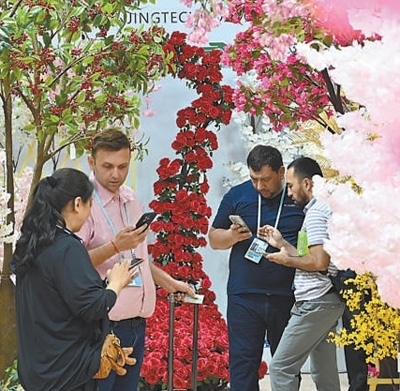 第135屆廣交會(huì)二期園林展區(qū)吸引許多外國采購商。陳楚紅攝