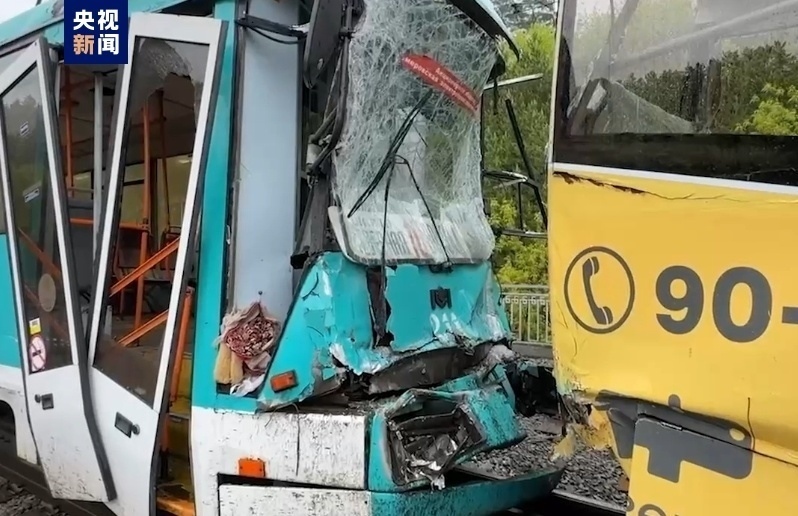 當(dāng)?shù)貢r間6月6日,俄羅斯克麥羅沃市兩輛有軌電車相撞。