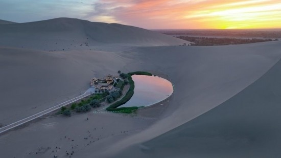 這是6月6日拍攝的鳴沙山月牙泉(無(wú)人機(jī)照片)。新華社記者 郎兵兵 攝