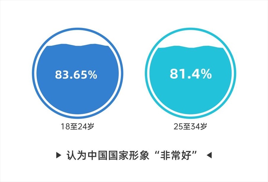 調查中,全球多數(shù)受訪者對中國國家形象抱有好感,其中七成受訪者選擇“非常好”。值得一提的是,18至24歲和25至34歲的青年受訪者持同樣好感度的占比最高,分別達到83.65%和81.4%,遠高于其他年齡段的受訪者。
