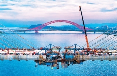 近日,浙江寧波舟山港六橫公路大橋一期項目梅山水道橋即將合龍。該大橋建成后,可實現(xiàn)六橫島、佛渡島、梅山島三島港區(qū)、產業(yè)聯(lián)動發(fā)展,推動甬舟一體化駛入“快航道”。胡學軍攝(人民視覺)