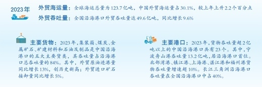 ——貨物吞吐量超2億噸以上的中國沿海港口共有23個,沿海港口航道已實現(xiàn)“一圖覆蓋”,沿海水上安全通信“一網貫通”