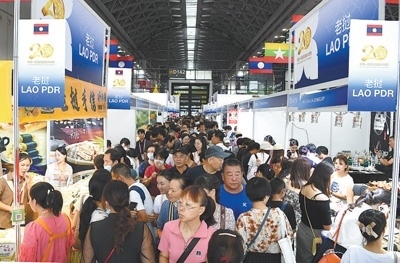 2023年9月,第二十屆中國—東盟博覽會公眾開放日期間,觀眾參觀東博會老撾商品館。新華社記者 周 華攝