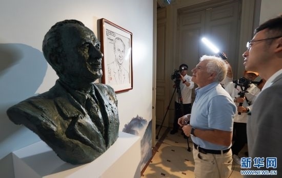 國際奧委會副主席、薩馬蘭奇體育發(fā)展基金會創(chuàng)始人胡安·安東尼奧·薩馬蘭奇到訪“中國之家”,參觀了袁熙坤的創(chuàng)作。