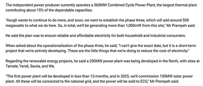 深能安所固投資建設(shè)運(yùn)營的聯(lián)合循環(huán)發(fā)電廠裝機(jī)容量560兆瓦,并計(jì)劃在未來通過擴(kuò)建工程提升至超1000兆瓦,為當(dāng)?shù)丶彝ズ凸I(yè)消費(fèi)者提供可靠且負(fù)擔(dān)得起的電力供應(yīng)。加中兩國員工在電廠運(yùn)營中密切合作,新入職的加納員工會配有一名中國導(dǎo)師,還可以通過參加培訓(xùn)提升職業(yè)技能?!约蛹{通訊社報(bào)道